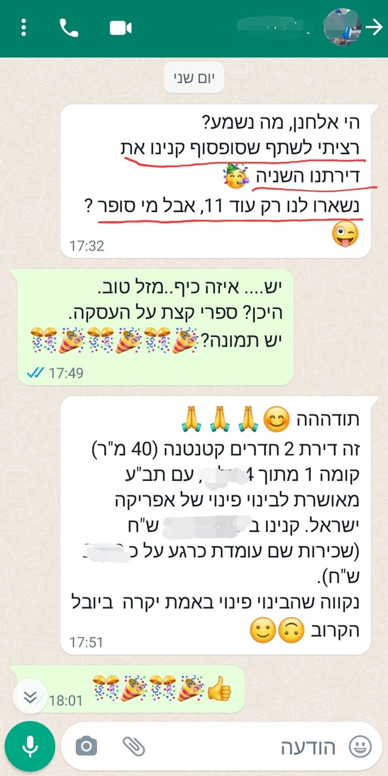 שמשתתפי התהליך שכבר קנו מספר נכסים יספרו לך