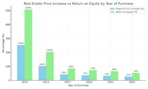 התשואה רק מעליית הערך (בלי לחשב תזרים, ירידת קרן, התחדשות עירונית וכו') הייתה נראית כך: