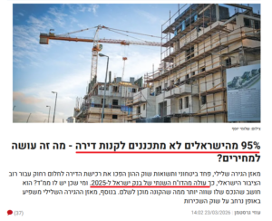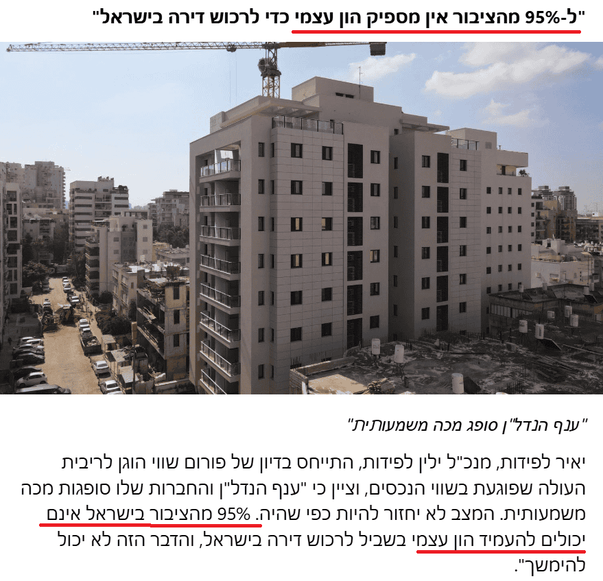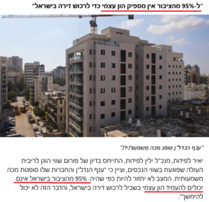 בכתבה מקבילה אחרת שפורסמה בעיתון דה-מרקר אנו כבר מקבלים נוסח שונה אך עם מספר דומה, המספר 95% מהישראלים/ציבור נשאר כפי שהיה, והנוסח השתנה לכך שאין להם מספיק הון עצמי לרכוש דירה.