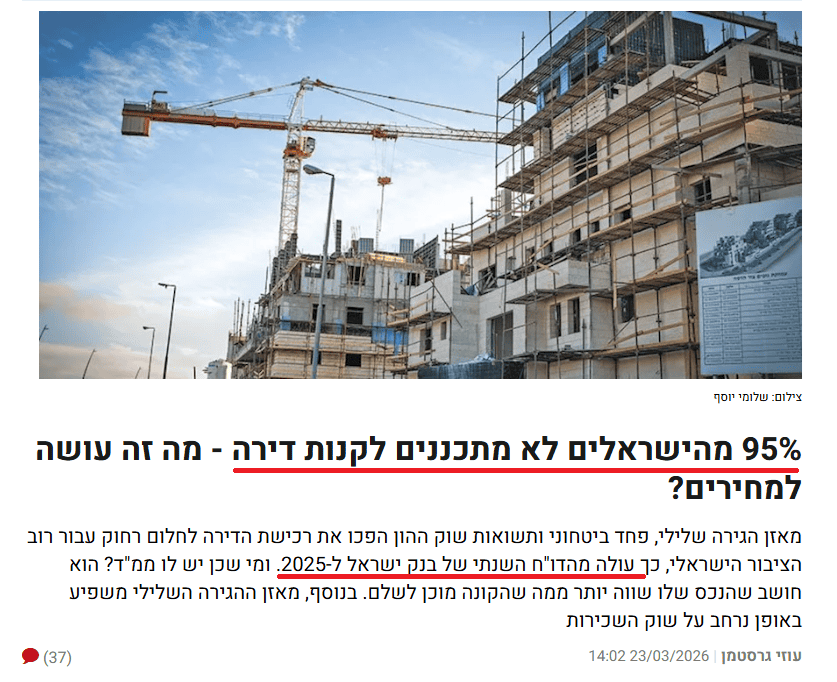 מהנדסים לכם את התודעה ע"י כתבות שמטרתן לשכנע אתכם לא לרכוש דירות-