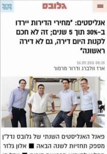 ניסיון דומה שלהם היה אי שם בשנת 2011 עת התראיינו כמה אנליסטים של בתי ההשקעות וטענו בבטחון כי מחירי הדירות ירדו ב- 30%, זה היה בשנת 2011: